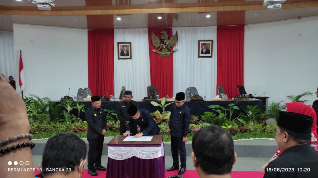 TerabasNews, Sungailiat – Dewan Perwakilan Rakyat Daerah (DPRD) Kabupaten Bangka menggelar rapat paripurna berlangsung diruang Mahligai DPRD, Jumat (18/08).