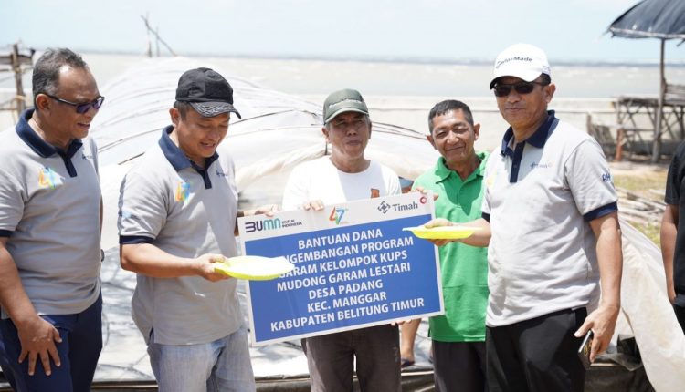 TerabasNews, Belitung Timur – PT Timah Tbk mendorong peningkatan produksi garam kelompok KUPS Kube Garam Lestari, Desa Padang, Manggar, Kabupaten Belitung Timur.