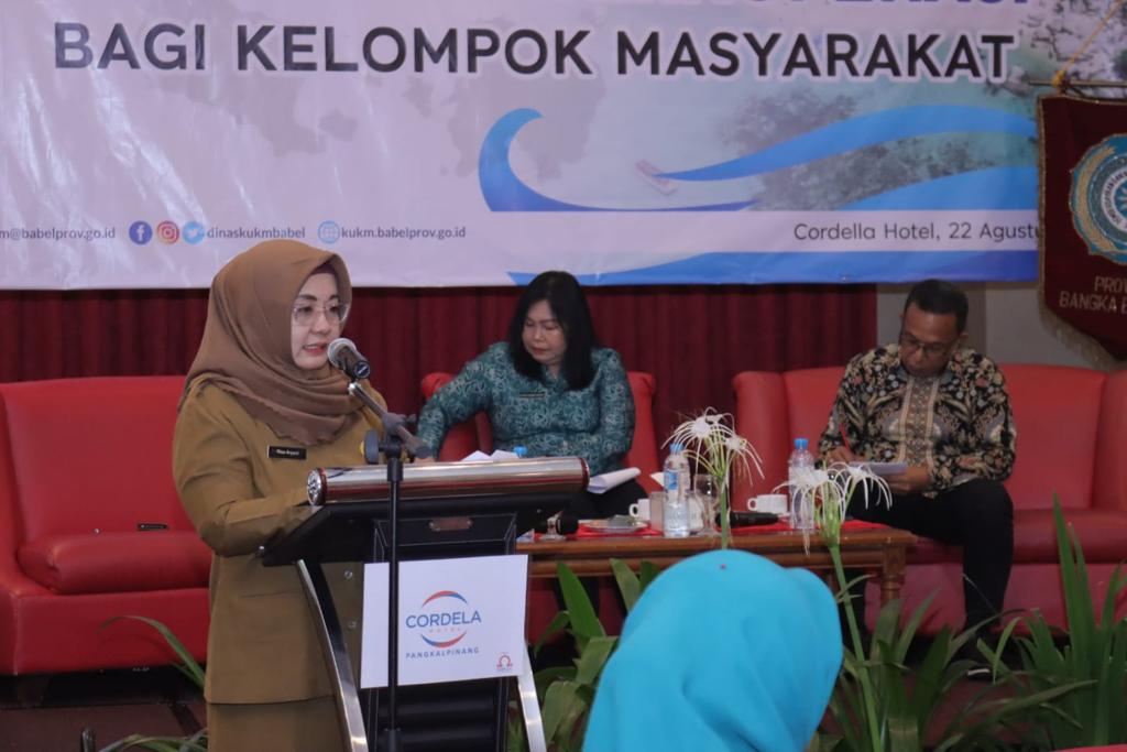 Riza Aryani selaku Sekretaris Dinas Koperasi dan UKM Kep. Babel dalam sambutannya juga menjelaskan betapa koperasi memiliki peran penting dalam memperkuat ekonomi rakyat dengan mengusung nilai-nilai kebersamaan, gotong-royong, kekeluargaan, solidaritas sosial, dan kerja sama.