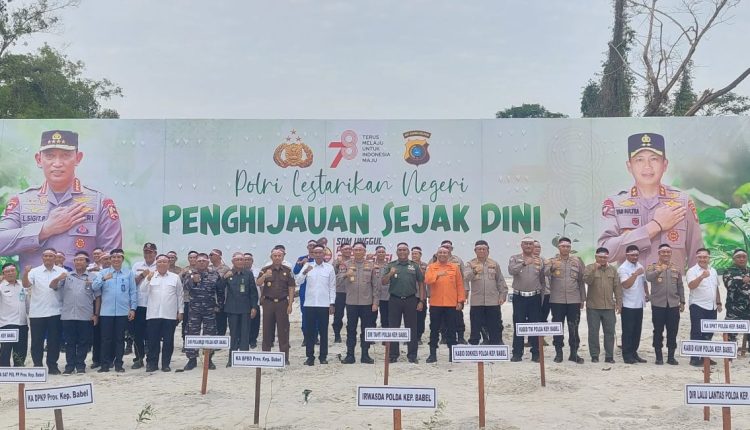 TerabasNews,Pangkalanbaru, Kepala Staf Korem 045 / Garuda Jaya Kolonel inf Marsal Deni Mewakili Danrem Brigjen TNI A. Dedy Prasetyo, S.I.P melakukan kegiatan penanaman pohon yang diselenggarakan Polda Babel dalam rangka memperingati hari kemerdekaan RI ke 78 dan rangkaian kegiatan AMMTC ke 17 tahun 2023.