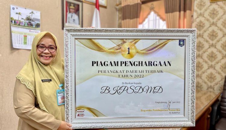 “Alhamdulillah, BKPSDMD Provinsi Kepulauan Bangka Belitung meraih prestasi berupa pengakuan atas kinerja dalam kurun waktu 2 tahun berkarya (2021 – 2022), dengan tujuan utama untuk memberikan kontribusi nyata dalam mewujudkan Provinsi Kepulauan Bangka Belitung yang makin maju, khususnya untuk pelayanan kepegawaian” ungkapnya penuh syukur.
