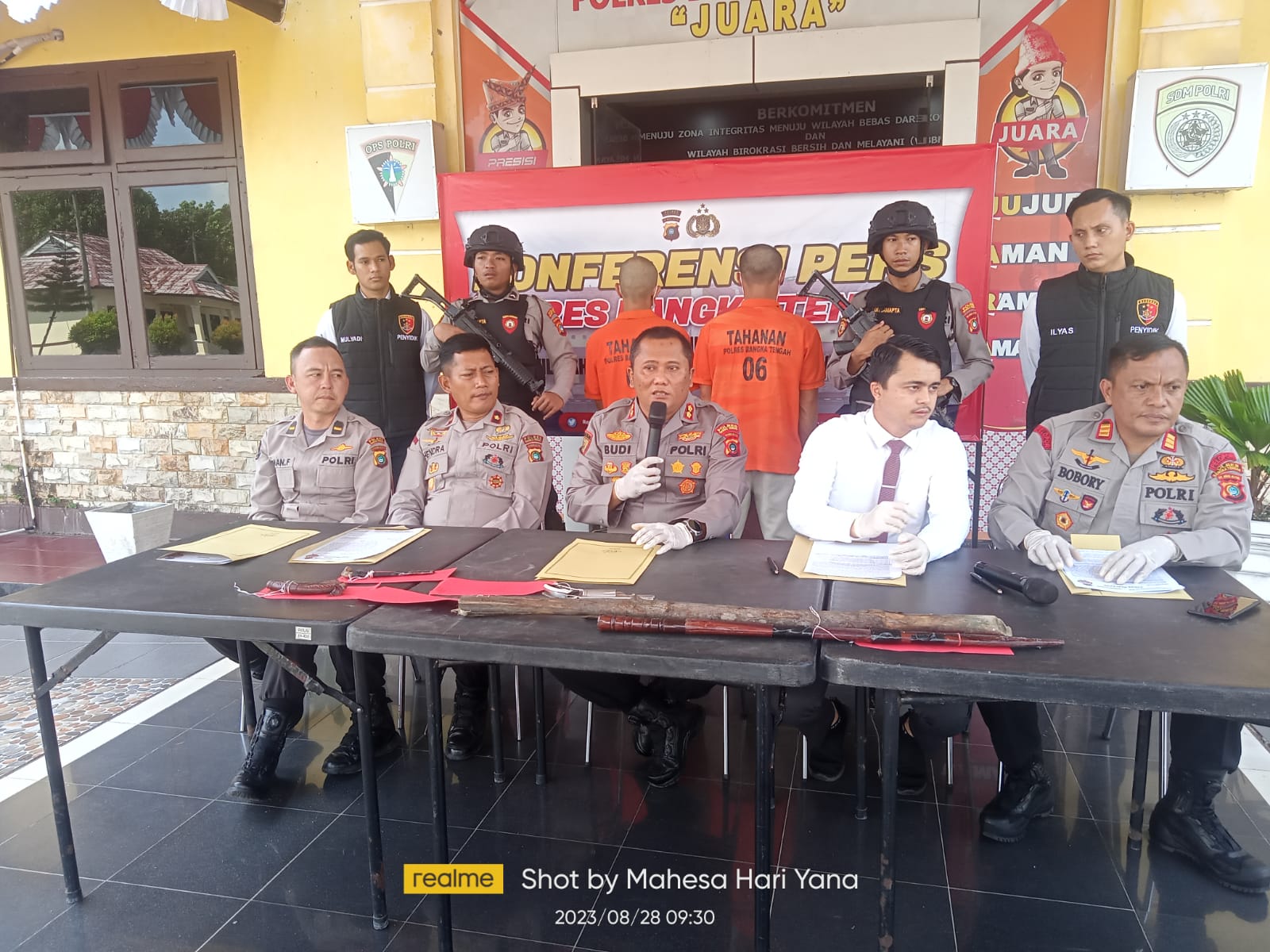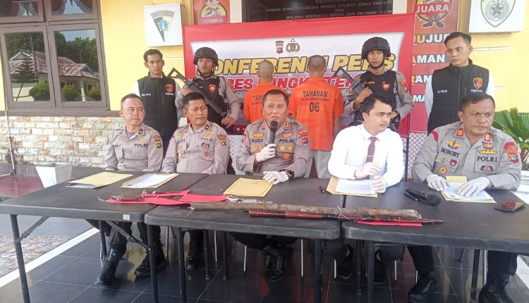 “Barang bukti yang kita amankan 1 pucuk senjata api rakitan warna silver, sebilah tajam parang panjang, 1 buah pisau, dan 1 buah badik serta kayu panjang, kemudian barang bukti lainnya sehelai baju berjenis kaos merk QUICK DRY berwarna hitam dengan bercak darah,.celana panjang jeans warna biru dengan bercak darah, lalu jaket warna biru dengan bercak darah juga,” pungkasnya.