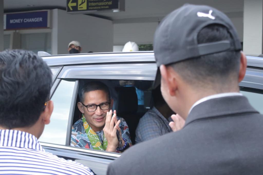 “Senang sekali bisa kembali ke tanah laskar pelangi ini, ayo kita gaungkan kembali lets go belitung,” ucap Menparekraf Sandi setiba di Bandara H.A.S Hanandjoeddin.