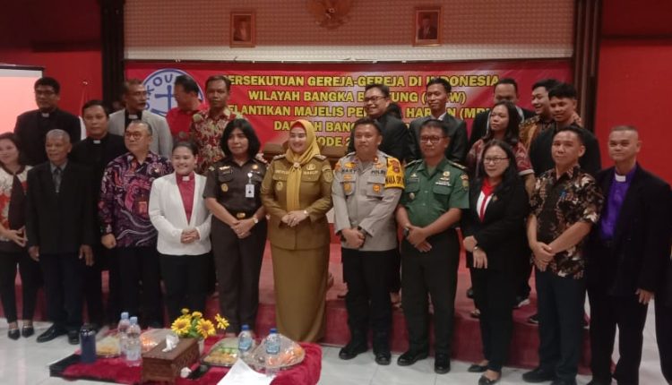 TerabasNews, Bangka Selatan – Wakil Bupati Bangka Selatan, Debby Vita Dewi menghadiri acara pelantikan Majelis Pekerja Harian (MPH) Persekutuan Gereja-Gereja dindonesia Daerah (PGID) Bangka Selatan, Selasa (12/9/2023).