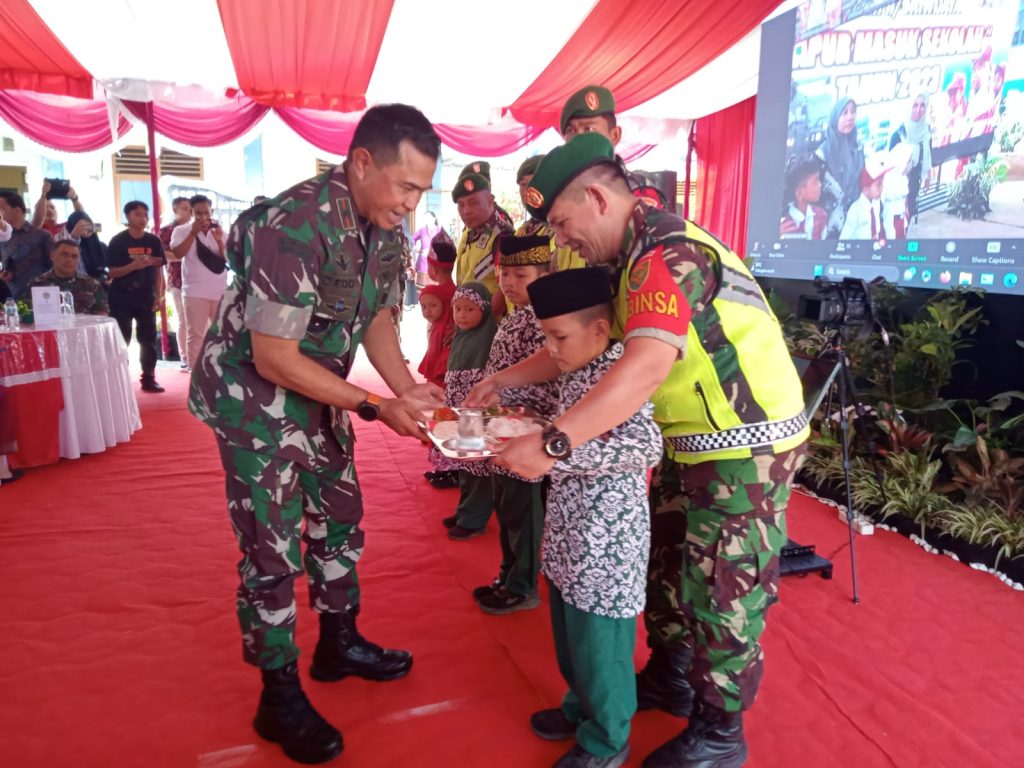 TerabasNews, – Pangkalanbaru – Danrem 045/Gaya Brigjen TNI A.Dedy Prasetyo,S.I.P. didampingi Ibu Ketua Persit Koorcabrem 045 dan Forkopimda Provinsi Bangka Belitung melaksanakan Launching Program unggulan Dapur Masuk Sekolah tahun 2023 secara serentak, bertempat di SDN 12 Pangkalan Baru Desa Pedindang Kabupaten Bangka Tengah, Jumat (22/9/2023)