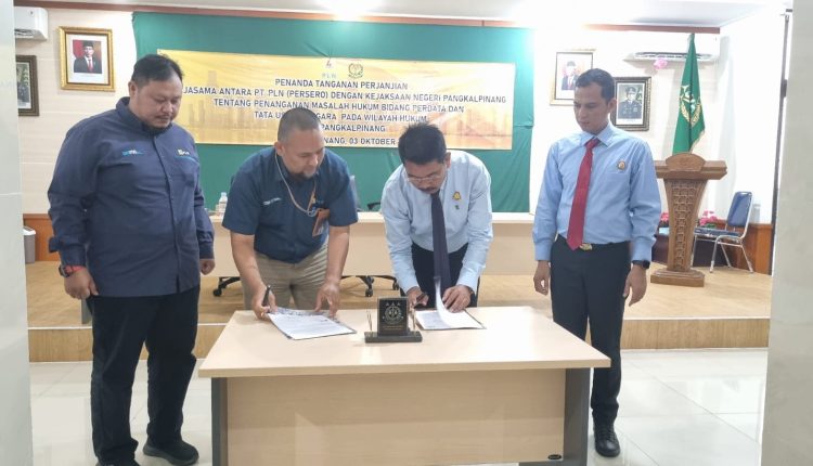 TerabasNews, Pangkalpinang – PT PLN (Persero) Unit Pelaksana Pelayanan Pelanggan (UP3) Bangka, bersama dengan Kejaksaan Negeri Pangkalpinang, telah menandatangani Perjanjian Kerjasama mengenai Penanganan Masalah Hukum Bidang Perdata dan Tata Usaha Negara. Penandatanganan berlangsung di Ruang Pertemuan Kejaksaan Negeri Pangkalpinang pada Selasa (03/03/2023).