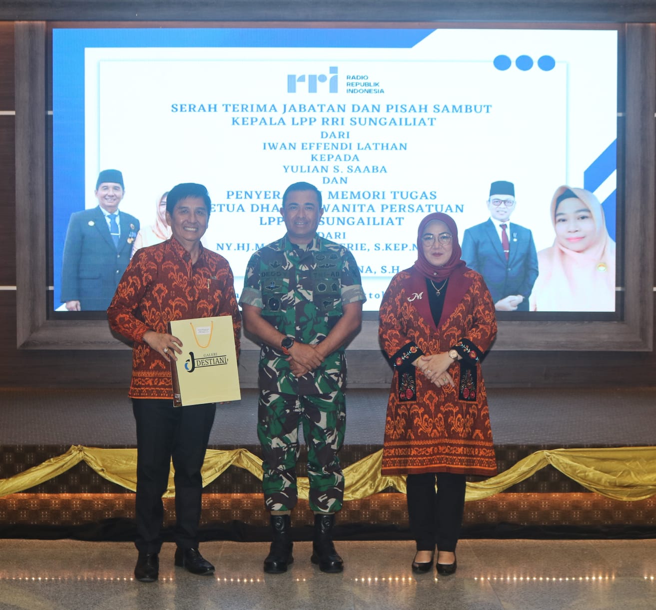 Pergantian kepala LPP RRI dari pejabat lama Iwan Effendi, S.Sos kepada pimpinan baru Yulian S.Saaba,SH yang diadakan di ruang Pasir Padi Kantor Gubernur Provinsi Kepulauan Bangka Belitung