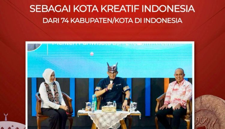 TerabasNews,PANGKALPINANG, DISKOMINFO – Pangkalpinang ditetapkan sebagai Kota Kreatif Indonesia dari 74 kabupaten/kota di Indonesia oleh Menteri Pariwisata dan Ekonomi Kreatif (Parekraf), Sandiaga Uno, pada Selasa (16/10/2023). Lima kabupaten/kota yang terpilih sebagai KaTa Kreatif Indonesia selain Kota Pangkalpinang yakni Kabupaten Banyumas, kabupaten Batang, Kota Makassar dan Kabupaten Sleman.