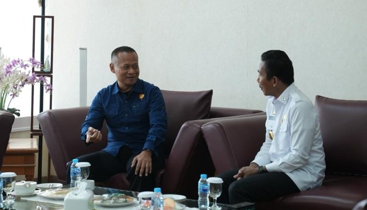 TerabasNews,PANGKALPINANG-Penjabat (Pj) Gubernur Kepulauan Bangka Belitung (Kep. Babel) Suganda Pandapotan Pasaribu didampingi Kepala Biro Pemerintahan Kurniawan terima kunjungan kerja Kepala Biro Gelar, Tanda Jasa, dan Tanda Kehormatan Sekretariat Militer Presiden (Setmilpres) Laksma TNI I Bayu Trikuncoro ke Kepulauan Bangka Belitung di Ruang VIP Bandara Depati Amir, Rabu (18/10/2023).