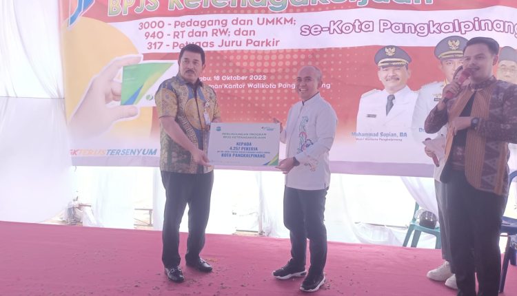 TerabasNews,Wali Kota Pangkalpinang, Maulan Aklil (Molen) secara seimbolis telah menyerahkan kartu peserta BPJS Ketenagakerjaan untuk layanan jaminan kecelakaan kerja dan jaminan kematian kepada 4.257 pekerja informal seperti ketua RT/RW, juru parkir dan pedagang pasar yang ada di kota itu.