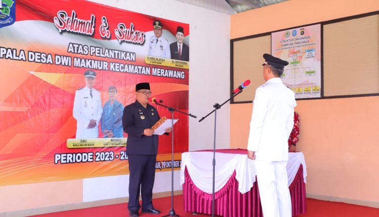 TerabasNews,Merawang – Kepala Desa Dwi Makmur untuk priode 2023 -2029 Djali, secara resmi dilantik oleh PJ. Bupati Bangka M. Haris AR., AP., MH. bertempat di aula pertemuan desa dwi makmur, Kamis (19/10/2023).