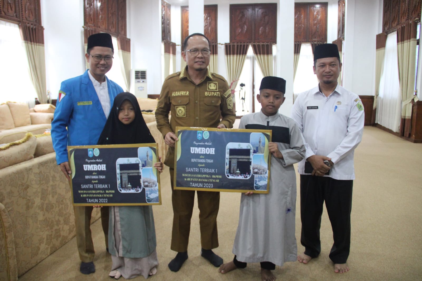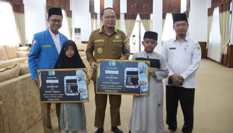 Hadiah Umroh dan uang saku tersebut diserahkan langsung oleh Bupati Bangka Tengah Algafry Rahman kepada kedua santri terbaik itu, di Pendopo Rumah Dinas Bupati, Senin (24/10/23).