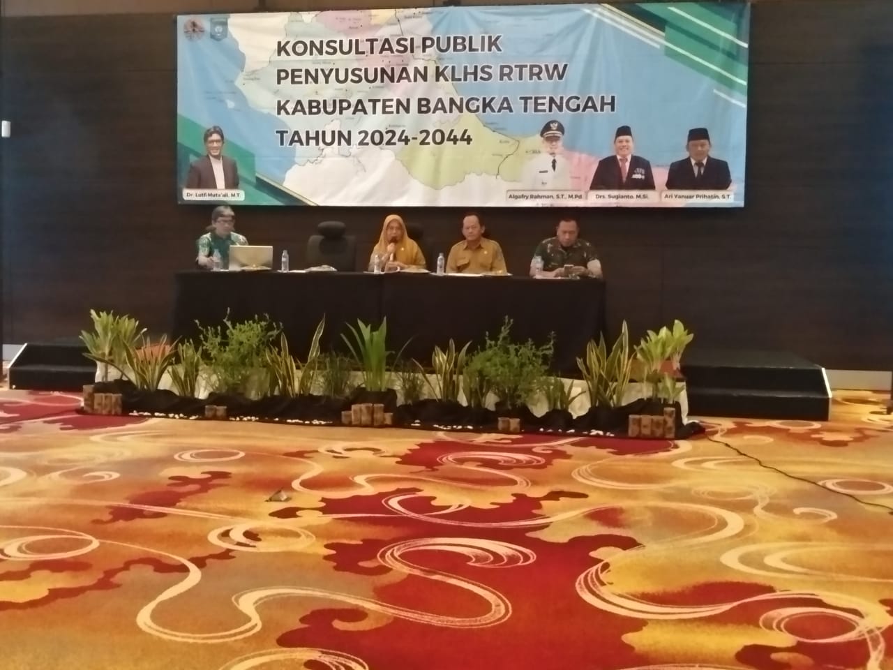 TerabasNews, PANGKALANBARU – Pemerintah Kabupaten Bangka Tengah melalui Dinas Lingkungan Hidup melaksanakan Konsultasi Publik II Penyusunan KLHS RTRW Kabupaten Bangka Tengah Tahun 2024-2044 yang melibatkan para pemangku kepentingan (stakeholder) seperti Forkopimda, Organisasi Kemasyarakatan (Ormas), para pelaku usaha, akademisi dan pihak terkait lainnya dalam analisa dampak Kebijakan Rencana Program (KRP) dan alternatif kebijakan, bertempat di Hotel Soll Marina, Senin (30/10/2023).