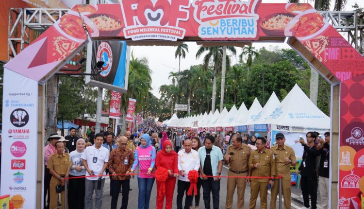 TerabasNews, PANGKALPINANG – Founder Food Millenial Festival (FMF) yang juga Ketua Tim Penggerak Pemberdayaan Kesejahteraan Keluarga (TP PKK) Kota Pangkalpinang di dampingi suami, Dr. H. Maulan Aklil atau Molen membuka FMF yang ke-8 di Depan Rumah Dinas Wali Kota Pangkalpinang, Selasa (7/11/2023).