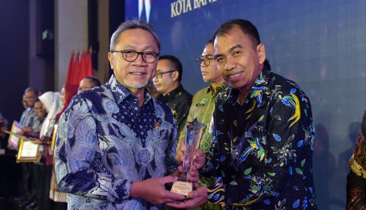 Mewakili Penjabat Gubernur Kep. Babel, Asisten III Setda Pemprov Kep. Babel Yunan Helmi menerima penyerahan penghargaan yang dilaksanakan di Pullman Bandung Grand Central tersebut, yang diserahkan langsung oleh Menteri Perdagangan (Mendag), Zulkifli Hasan, Jumat (10/11/2023)