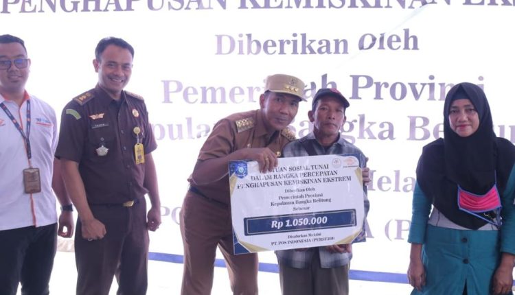 TerabasNews, PANGKALPINANG – Pemerintah Provinsi Kepulauan Bangka Belitung (Pemprov Kep. Babel) melalui Dinas Sosial Pemberdayaan Masyarakat Desa (Dinsos PMD) mulai menyalurkan bantuan sosial (Bansos) tunai dalam rangka penurunan kemiskinan ekstrem, Senin (13/11/2023).