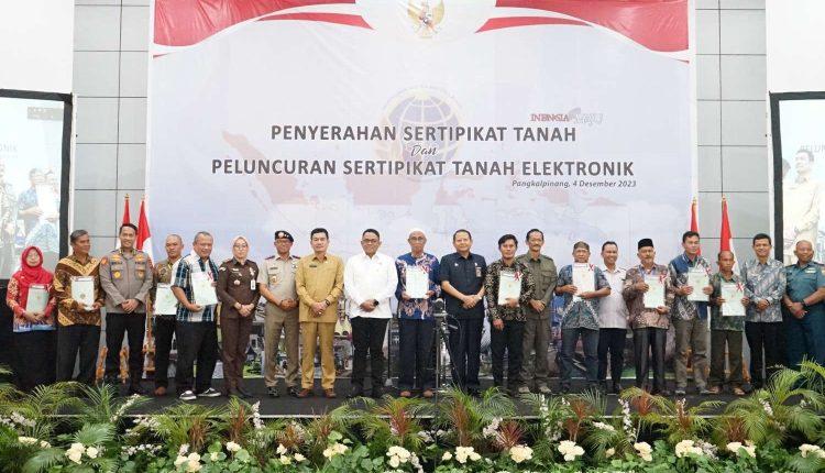 TerabasNews, Pangkalpinang – Pemerintah Kabupaten Bangka Tengah hadir dalam kegiatan launching Sertifikat Tanah Elektronik dan Penyerahan Sertifikat Tanah untuk Rakyat Tahun 2023, bertempat di Aula Graha Timah, Pangkalpinang, Senin (04/12/2023).