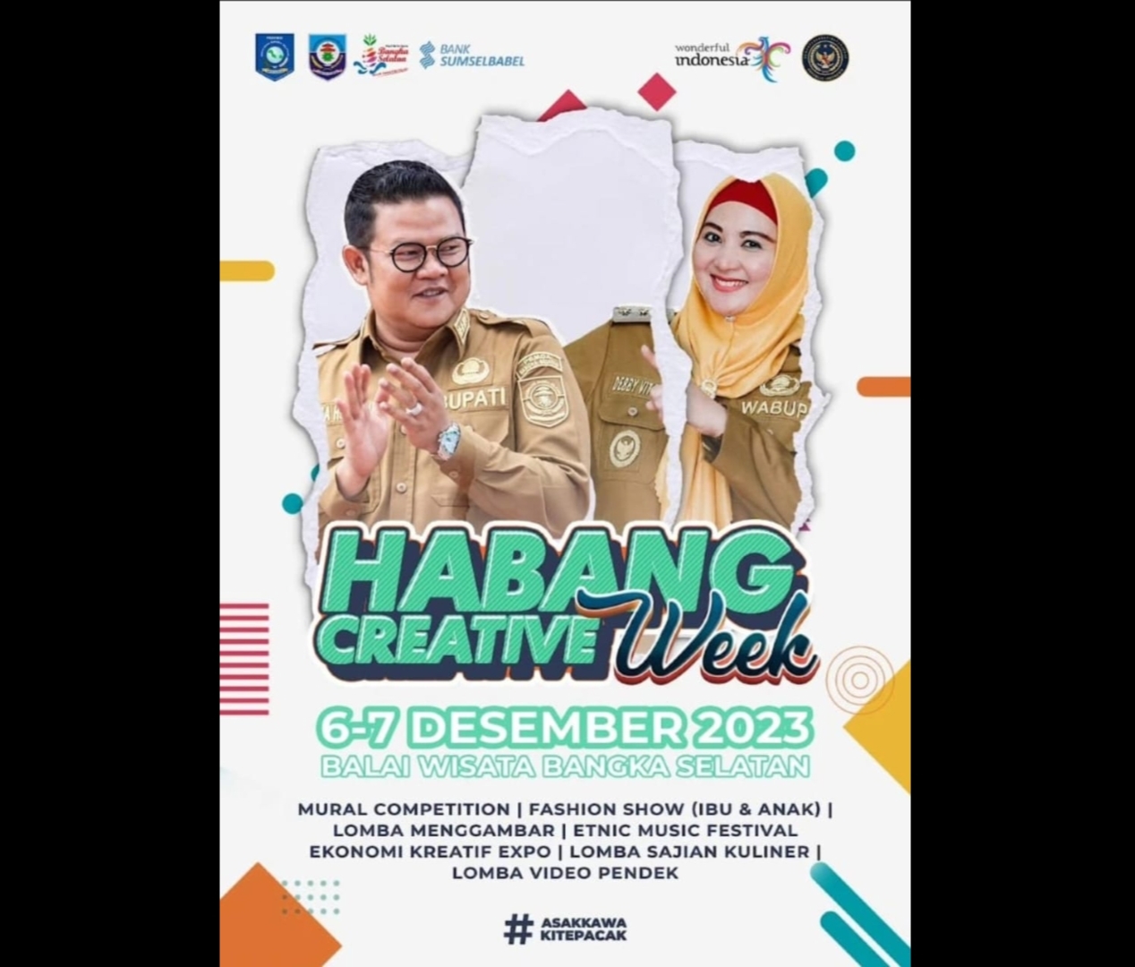 TerabasNews, Bangka Selatan, 4 Desember 2023 – Kabupaten Bangka Selatan menjadi tuan rumah acara besar, Pekan Kreatif Habang, yang digelar pada 6 dan 7 November 2023 di Balai Wisata Simpang Lima Habang. Inisiatif dari Dinas Pariwisata Kepemudaan dan Olahraga Kabupaten Bangka Selatan ini mendapat dukungan penuh dari Dinas Kebudayaan Pariwisata Pemuda dan Olahraga Provinsi Kepulauaan Bangka Belitung.