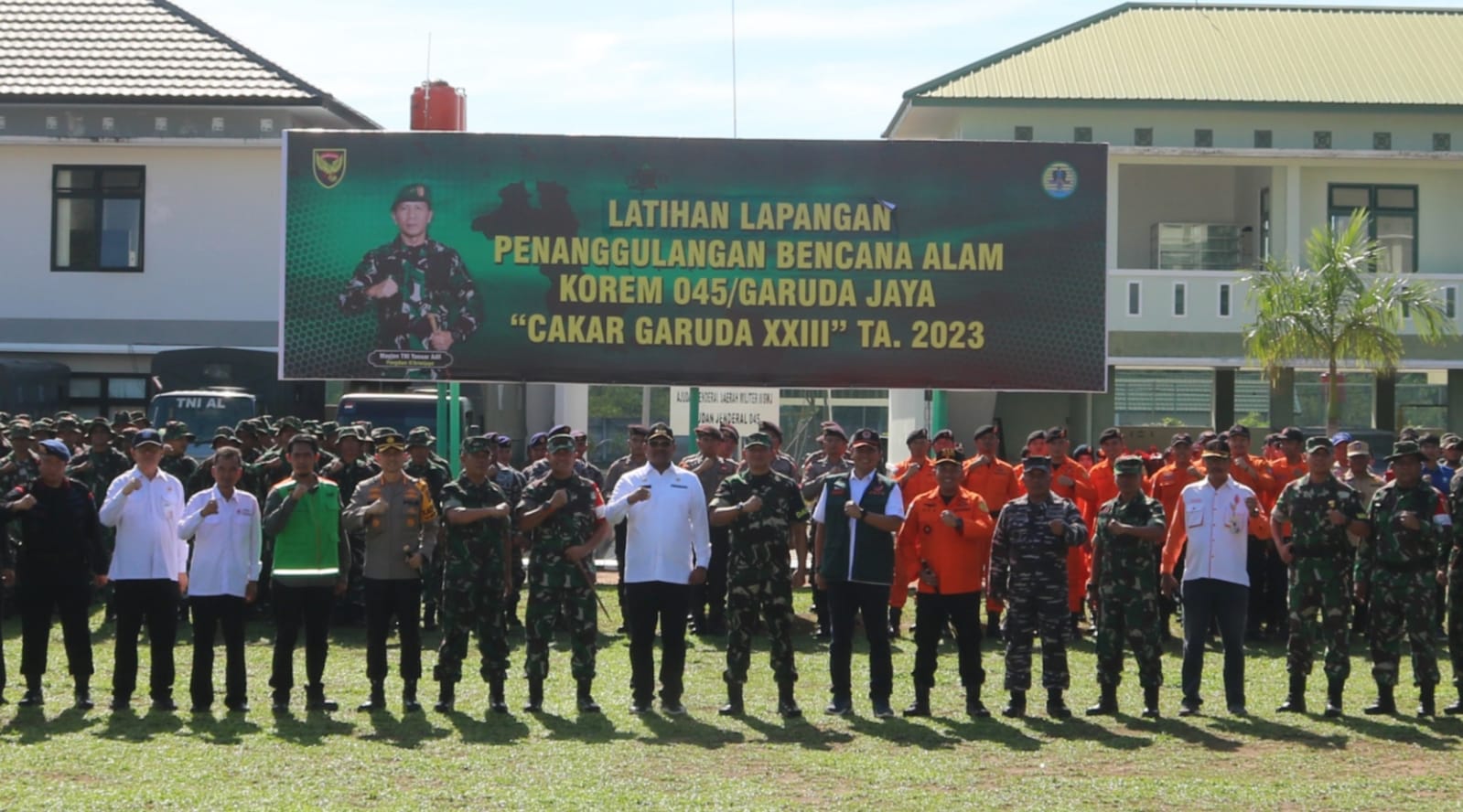 TerabasNews, Pangkalpinang – Irdam II/Swj Brigjen TNI Heru Setio Paripurnawan, M.D.A.M.S.S. bersama PJ.Gubernur Provinsi Kepulauan Bangka Belitung Dr. Safrizal Z.A, M.Si memimpin apel pembukaan latihan lapangan Korem 045/Gaya ” Cakar Garuda XXlll Tahun 2023 ” bertempat di Lapangan Upacara Makorem, Rabu (06/12/2023)