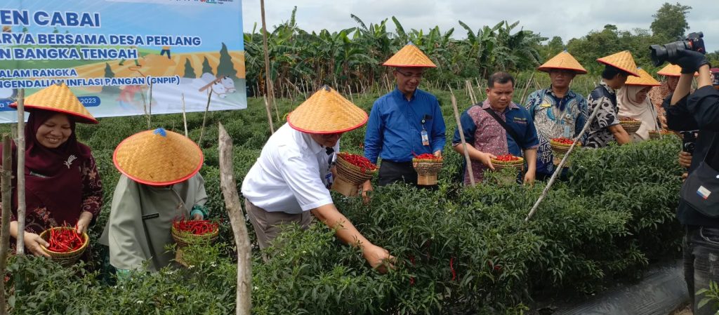 Bank Indonesia turut menyaksikan panen tersebut dan menyambut baik upaya pemerintah Kabupaten Bangka Tengah dalam meningkatkan produksi cabai lokal, di tengah tren kenaikan harga cabai yang per hari ini (7/12) mencapai Rp103.150. Bangka Tengah merupakan salah satu kabupaten yang menjadi sentra hortikultura dan memiliki peran strategis sebagai pemasok terdekat dengan Kota Pangkalpinang yang dihitung inflasinya oleh BPS. Wakil Bupati Bangka Tengah, Era Susanto, turut hadir dalam panen bersama. Dalam sambutannya, Era Susanto menyampaikan dukungan terhadap program pengendalian inflasi serta mengarahkan pemetaan pengembangan komoditas unggulan di setiap desa di Bangka Tengah.