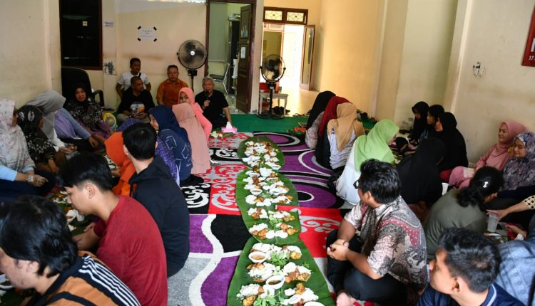 Acara dilajutkan dengan makan bersama ala ngeliwet, memakai daun pisang. Usai makan para pegawai bersanda gurau dengan di iringi lagu religi. (Humas Disperindag Babel).