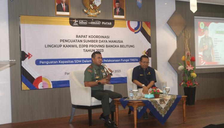 TerabasNews, Pangkalpinang, Danrem 045/Gaya Brigjen TNI A.Dedy Prasetyo, S.I.P. sebagai narasumber kegiatan rapat koordinasi penguatan sumber daya manusia lingkup Kanwil DJPB Provinsi Bangka Belitung Tahun 2023. tempat Aula Lantai 2 Kanwil Ditjen Perbendaharaan Provinsi Bangka Belitung, Rabu (13/12/2023)