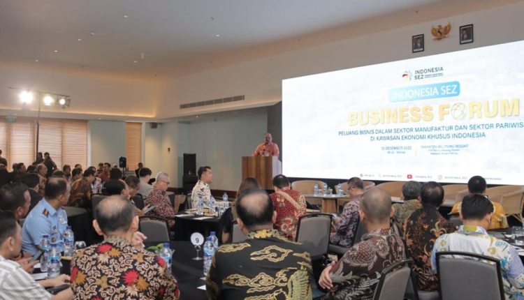 TerabasNews, TANJUNGPANDAN – Sekretariat Jenderal Dewan Nasional Kawasan Ekonomi Khusus (KEK) menggelar acara Indonesia Special Economic Zone (SEZ) Business Forum tahun 2023, berlangsung di Sheraton Belitung Resort KEK Tanjung Kelayang, Dusun Timur Raya, Kecamatan Sijuk, Kabupaten Belitung, Rabu (13/12/23).