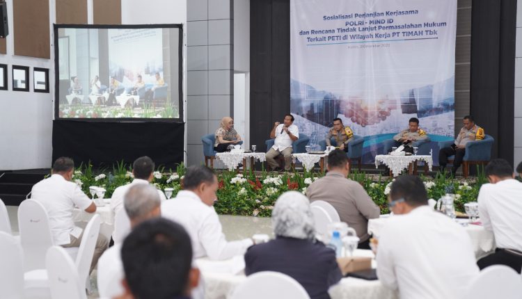 TerabasNews, Pangkalpinang — MIND ID menggelar Sosialisasi perjanjian kerja sama Polri-MIND dan rencana tindak lanjut permasalahan hukum terkait PETI di Wilayah Kerja PT Timah Tbk di Graha Timah Pangkalpinang, Kamis (21/12/2023).