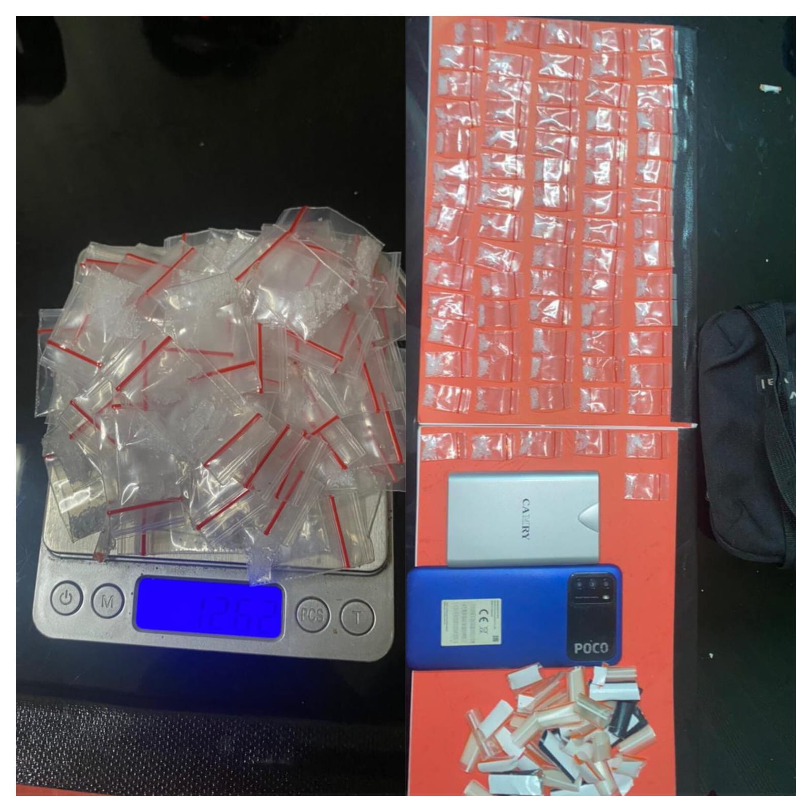 “Jadi dari 2 TKP ini, Tim berhasil mengamankan sebanyak 76 plastik bening yang berisikan narkoba jenis sabu dengan total berat bruto 12,62 gram serta 1 unit HP dan 1 unit timbangan digital,”terang Jojo.