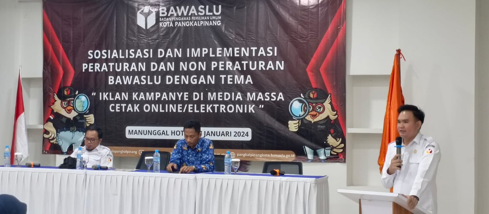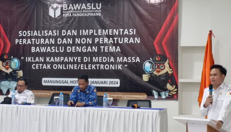 TerabasNews, PANGKALPINANG – Badan Pengawas Pemilu (BAWASLU) Kota Pangkalpinang menggelar sosialisasi dan implementasi aturan terkait iklan kampaye di media massa, baik media cetak, online maupun elektronik di Grand Manunggal Hotel, Rabu (17/1).