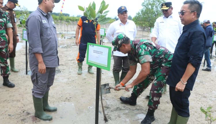 TerabasNews, Merawang – Danrem 045/Gaya Brigjen TNI A.Dedy Prasetyo, S.I.P. ikut serta penanaman pohon (Mangrove) serentak seluruh Indonesia dalam rangka hari lahan basah sedunia tempat Pantai Batu Tunggal Desa Riding Panjang Kecamatan Merawang Kabupaten Bangka, Rabu (07/02/2024)