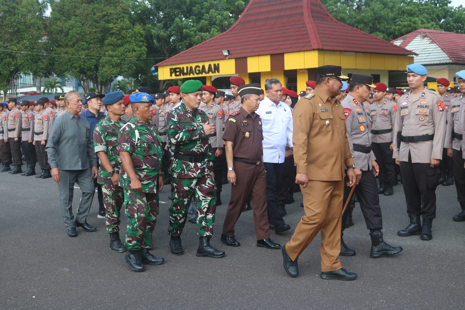 Kolonel Inf Nurman Syahreda, S.E mewakili Danrem 045/Gaya Brigjen TNI A.Dedy Prasetyo, S.I.P. menghadiri apel pergeseran pasukan Pam Pemilu 2024 BKO Polres/ta jajaran Polda Kepulauan Bangka Belitung tempat Lapangan apel Polda Kepulauan Bangka Belitung, Senin (12/02/2024)