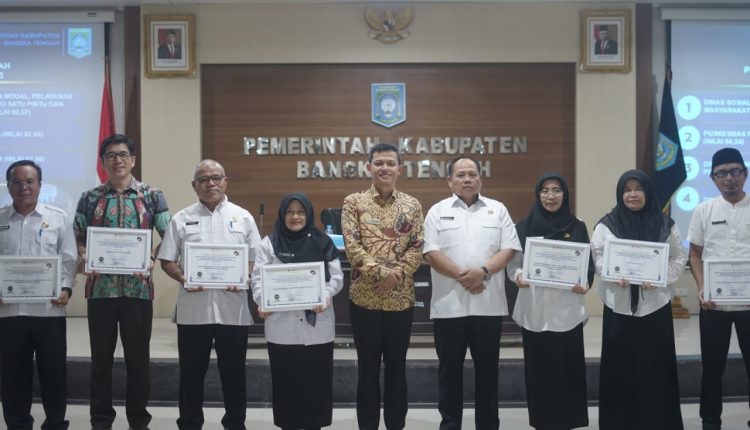 TerabasNews,BANGKA TENGAH – Pemerintah Daerah Kabupaten Bangka Tengah meraih nilai tertinggi dengan nilai 93,71 dari Ombudsman RI Bangka Belitung, tingkat Kabupaten-Kota se Bangka Belitung, dan peringkat 46 Nasional pada kepatuhan Penyelenggaraan Pelayanan Publik 2023.