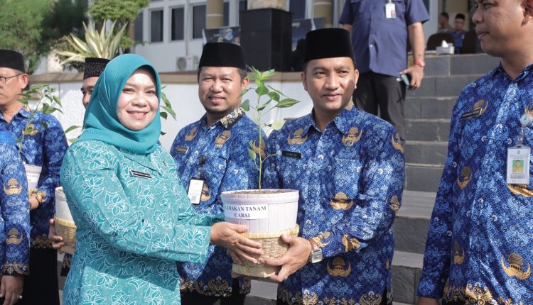 TerabasNews,PANGKALPINANG – Sebagai bentuk dukungan penuh terhadap Gerakan “Semarak Babel” (Semangat Menanam Rakyat Bangka Belitung) yang diusung oleh Penjabat (Pj) Gubernur Kepulauan Bangka Belitung (Kep. Babel) Safriza ZA, maka Pj. Ketua Tim Penggerak Pemberdayaan dan Kesejahteraan Keluarga (TP PKK) Kep. Babel Safriati Safrizal, ikut serta dalam kegiatan pembagian bibit cabai, di Halaman Kantor Wali Kota Pangkalpinang, Senin (19/2/24).