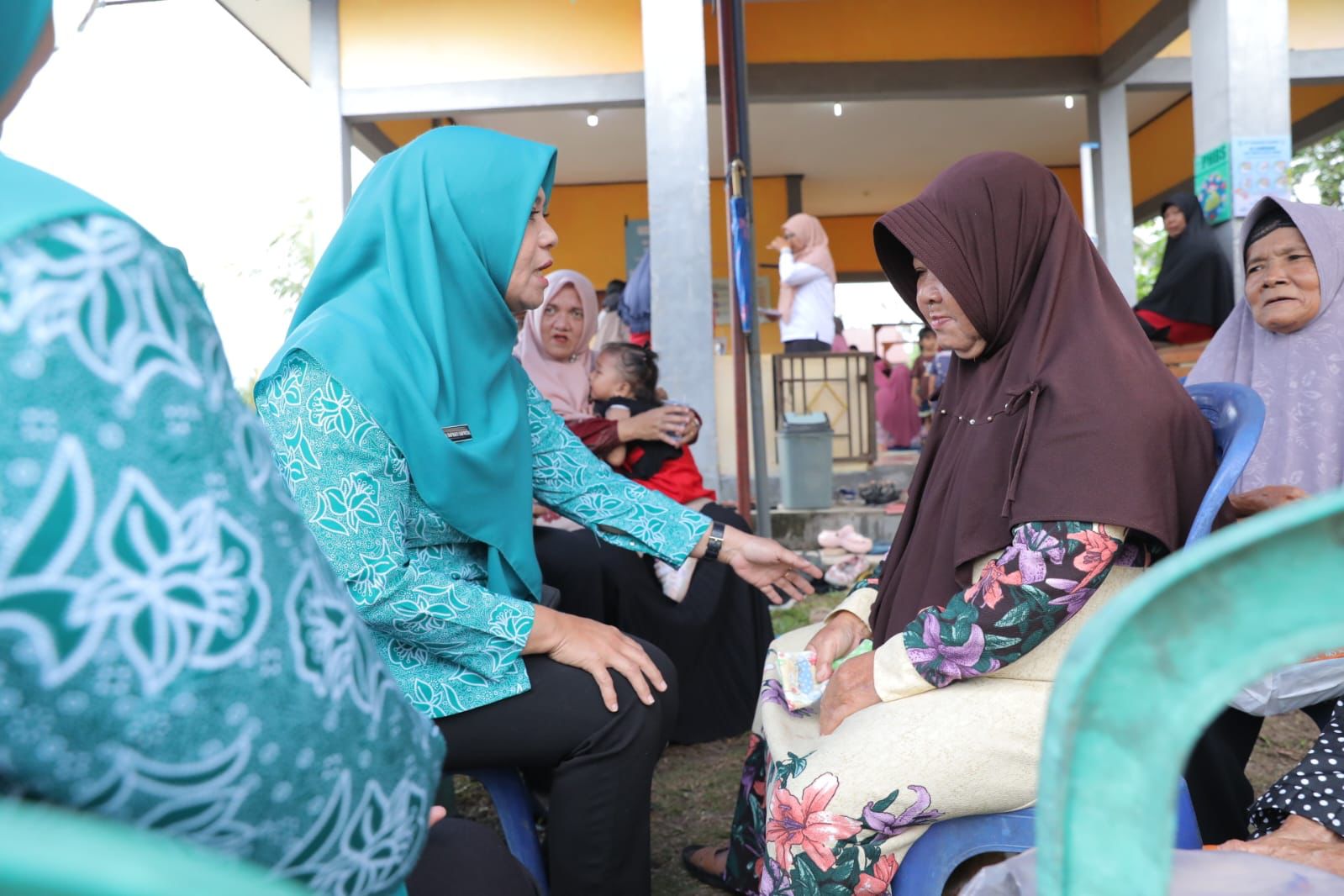 Selain bertemu dan berbincang dengan para lansia, ibu hamil dan balita yang hadir, Safriati juga memastikan setiap meja pelayanan menjalankan fungsi dan memberi layanan kepada masyarakat sesuai dengan ketetapannya.