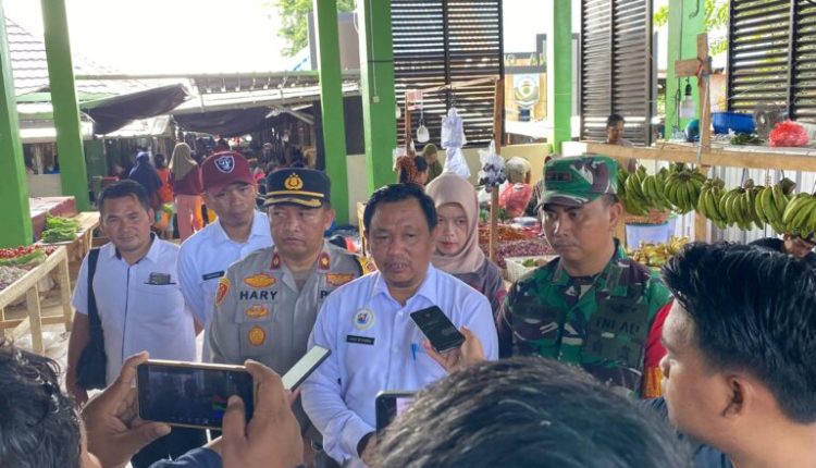 TerabasNews, Bangka Selatan – Penjabat Sekretaris Daerah Kabupaten Bangka Selatan, Haris Setiawan, didampingi oleh Dandim 0432/Bangka Selatan, Letkol Inf Gani Rahman, dan Wakapolres Bangka Selatan, Kompol Hary Kartono, melakukan peninjauan harga komoditas pangan di pasar tradisional Terminal Toboali, Rabu (28/02/24).