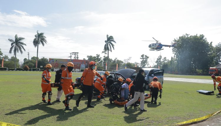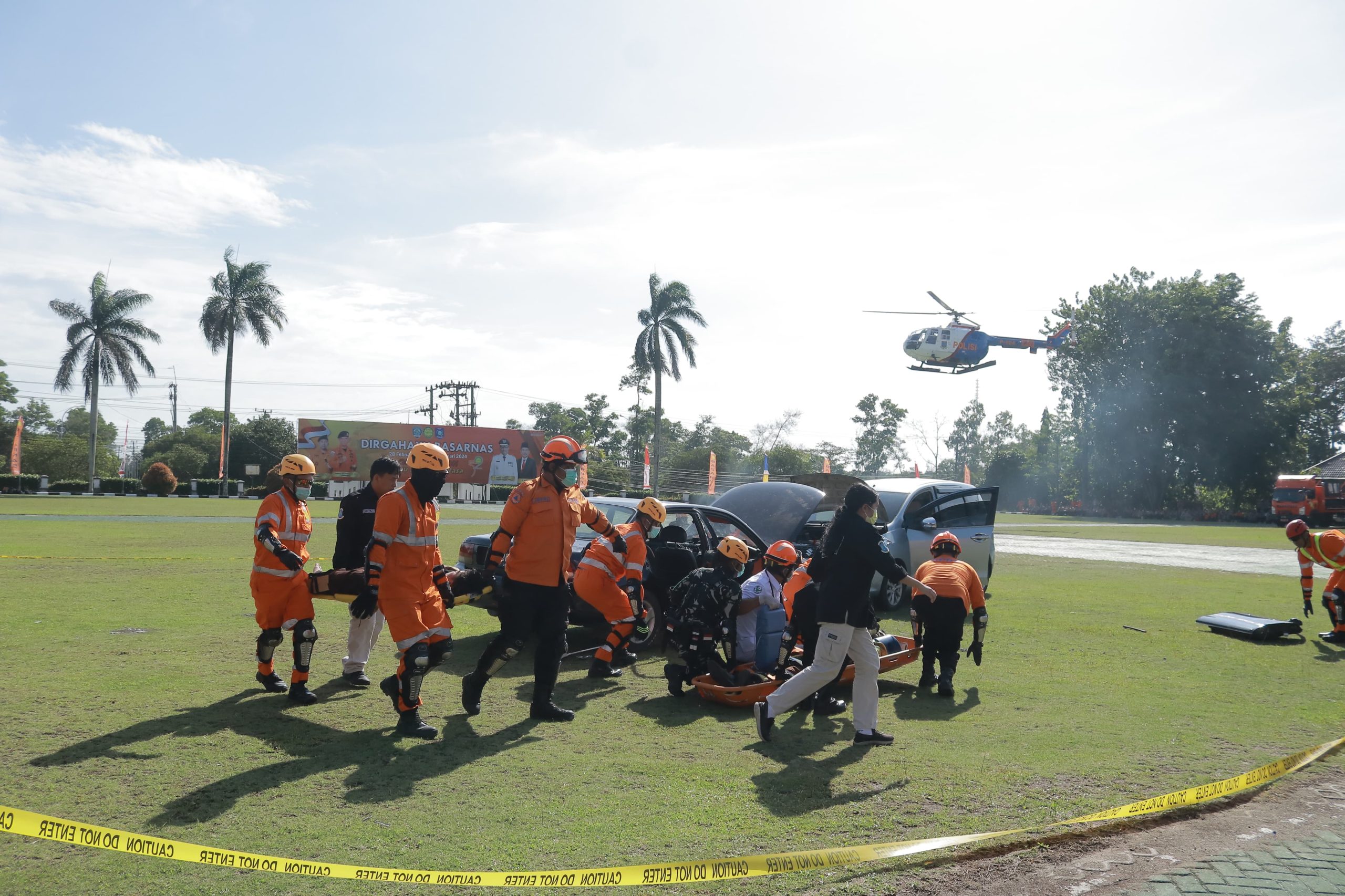 Dalam kegiatan yang dihadiri unsur Forkopimda Babel, instansi vertikal dan tamu undangan lainnya itu, pada akhir kegiatan, ditutup dengan simulasi kecelakaan penanganan khusus vehicle accident rescue.