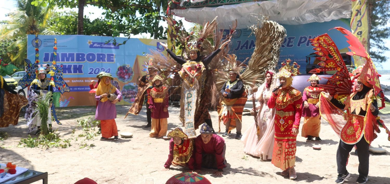 TerabasNews,BANGKA TENGAH – Jambore Tim Penggerak Pemberdayaan dan Kesejahteraan Keluarga (TP-PKK) Provinsi Kepulauan Bangka Belitung Tahun 2024 resmi di buka, pada pembukaan Jambore tersebut TP PKK Bangka Tengah menampilkan parade budaya.