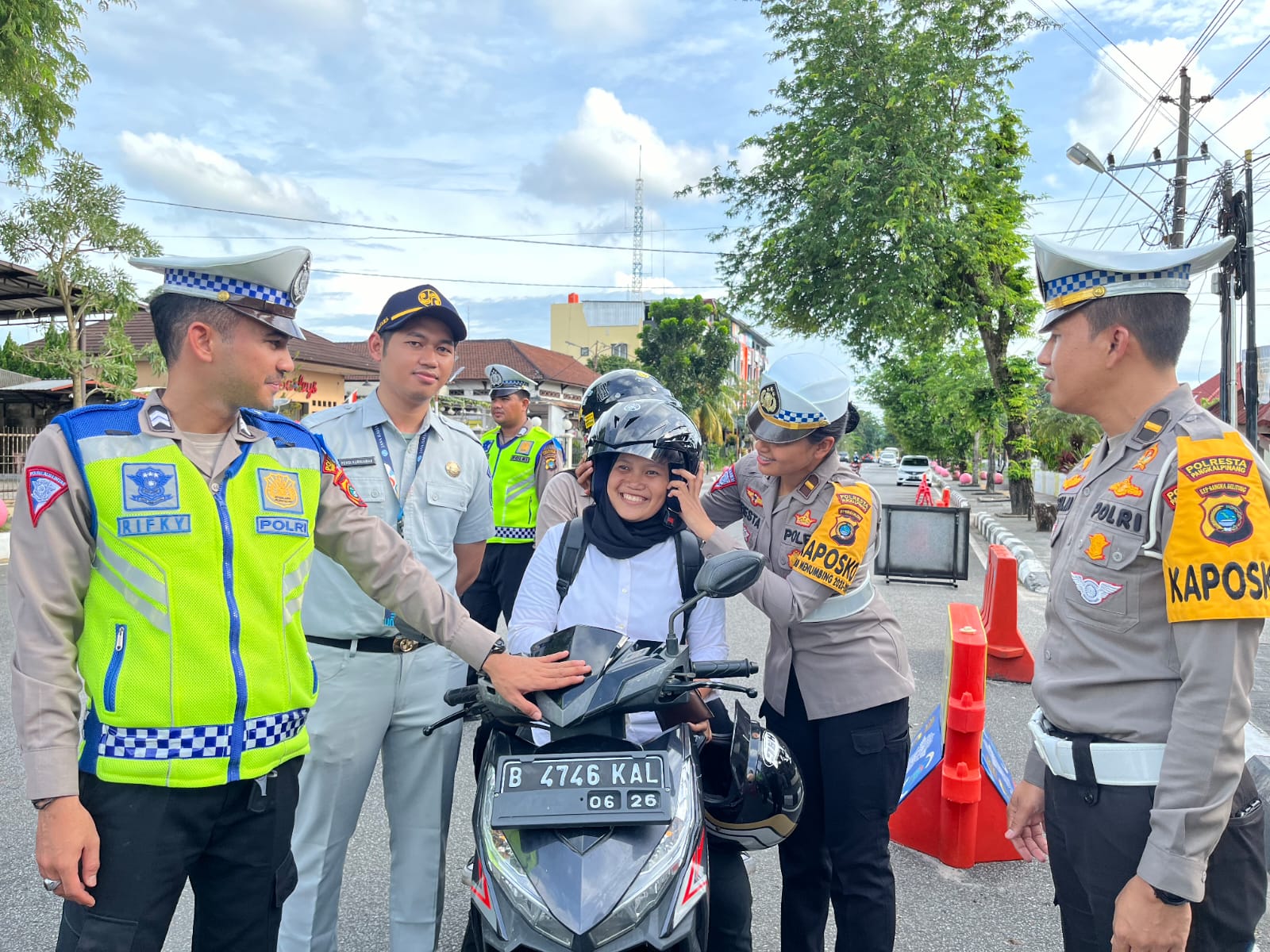 Arny menambahkan kegiatan aksi keselamatan ini dilakukan dengan memberikan sosialisasi dan edukasi kepada masyarakat tentang keselamatan berkendara. “Kami juga melakukan pemeriksaan kelengkapan berkendara dan administrasinya, dan bagi masyarakat yang telah patuh kami berikan hadiah seperti helm, souvenir dan coklat sebagai apresiasi, harapannya ini dapat memotivasi pengendara lainnya agar turut patuh dan tertib dalam berkendara, sedangkan bagi yang belum patuh akan diberikan edukasi serta teguran agar kedepan menjadi lebih tertib dan patuh” tambahnya.