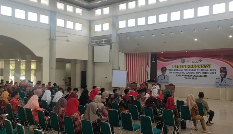 TerabasNews, Bangka Selatan – Pemerintah Kabupaten (Pemkab) Bangka Selatan mengelar rapat kordinasi percepatan penurunan stunting dan monitoring evaluasi l, Kamis (7/3/2024) di gedung serbaguna Pemkab Bangka Selatan.