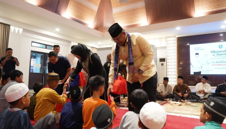 Dalam kegiatan tersebut, Pj Gubernur Safrizal beserta istri, juga Forkopimda berkesempatan menyerahkan bingkisan, dan santunan kepada 40 anak yatim.