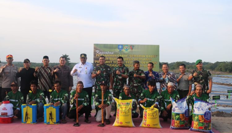 TerabasNews, Bangka Tengah – Danrem 045/Gaya Brigjen TNI A.Dedy Prasetyo, S.I.P. bersama Forkopimda Bangka Belitung melaksanakan penanaman cabai serentak dan buka puasa bersama di Batalyon Infanteri 147/KGJ Kecamatan Namang Kabupaten Bangka Tengah, Kamis (14/03/2024)