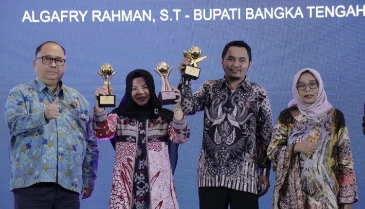 Bupati Bangka Tengah, Algafry Rahman sebagai Top Pembina BUMD 2024 dan Direktur RSUD Drs. H. Abu Hanifah Bangka Tengah, dr. Lismayoni mendapatkan penghargaan sebagai Top CEO BUMD.