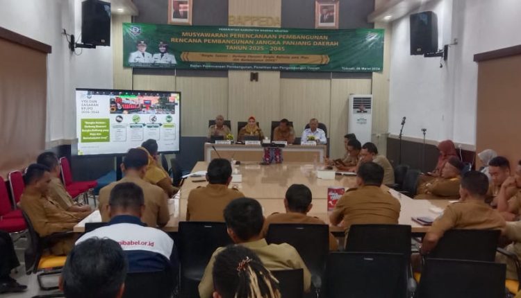 TerabasNews, Bangka Selatan – Pemerintah kabupaten (Pemkab) Bangka Selatan menggelar Musyawarah Perencanaan Pembangunan jangka Panjang Daerah (RPJPD) Tahun 2025-2045 di ruang Pulau Kelapan BAPPELITBAGDA kabupaten Bangka selatan. Selasa (26/03/2024).