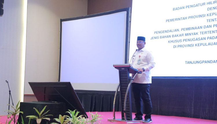 TerabasNews, TANJUNGPANDAN – Penjabat (Pj) Gubernur Kepulauan Bangka Belitung Safrizal ZA melakukan penandatanganan Perjanjian Kerja Sama (PKS) antara Badan Pengatur Hilir Minyak dan Gas Bumi (BPH Migas) mengenai Pengendalian Pembinaan dan Pengawasan dalam Jenis Bahan Bakar Minyak Tertentu dan Jenis Bahan Bakar Minyak Khusus Penugasan Pada Konsumen Pengguna di Provinsi Kepulauan Bangka Belitung bertempat di Ballroom Hotel BW Suite Tanjung Pandan, Jumat (3/5/2024).