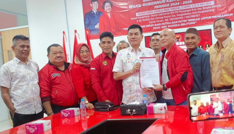 TerabasNews, Pangkalpinang – Keseriusan seorang Naziarto mengikuti Pilkada serentak 2024, beliau mendatangi kantor DPD PDI Perjuangan Bangka Belitung guna mendaftarkan dan sekaligus mengembalikan langsung formulir sebagai calon Gubernur Provinsi Kepulauan Bangka Belitung, Rabu 8/5.