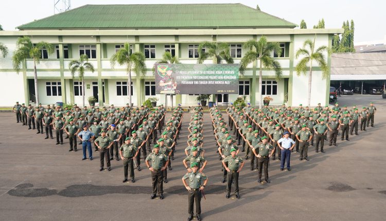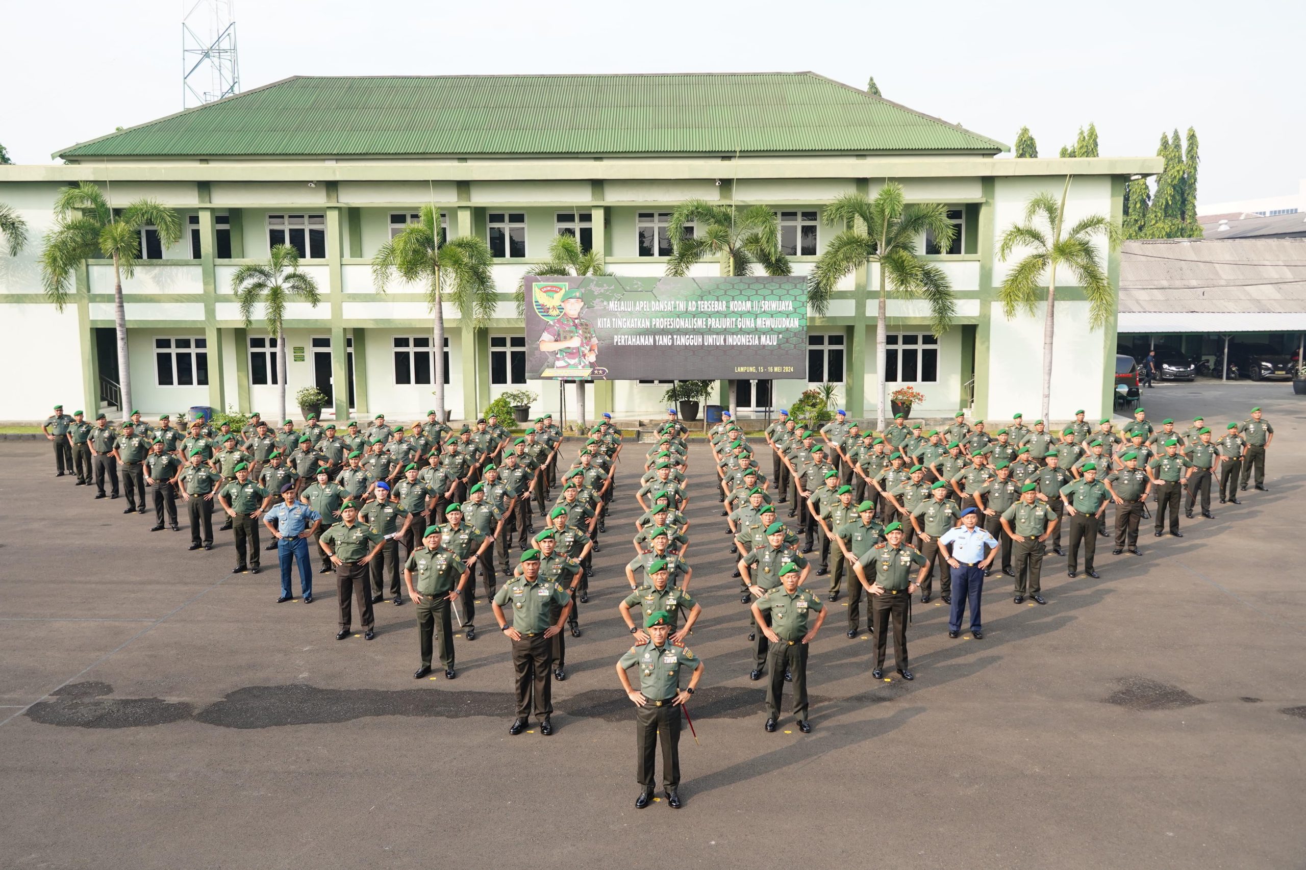 mengikuti Apel Dansat TNI AD tersebar Kodam II/Sriwijaya 2024 bertempat di Makorem 043/Gatam Jl. Teuku Umar Penengahan Bandar Lampung, Jumat (17/05/2024)