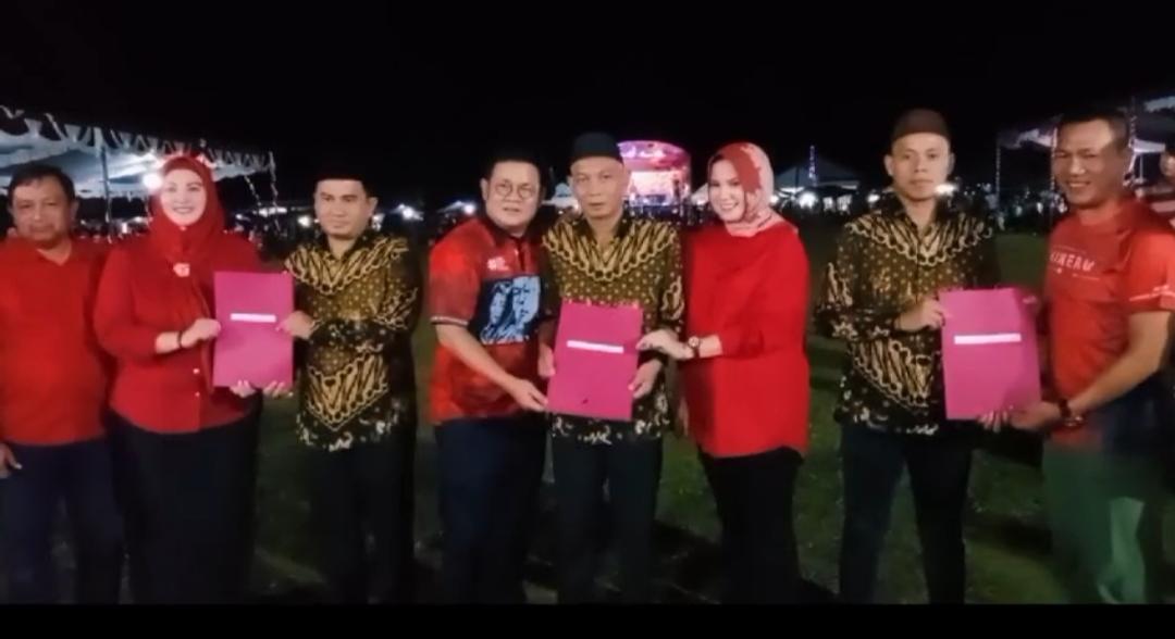 SK Perpanjangan Masa Jabatan tersebut diserahkan langsung oleh Bupati Riza saat malam ramah tamah program Aik Bakung di Desa Ranggung Kecamatan Payung,