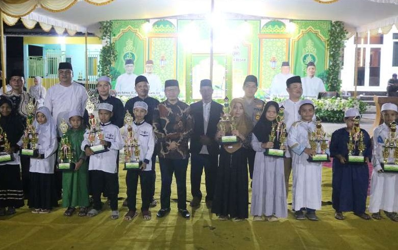 Pada kesempatan ini juga, Bupati Bangka Tengah menyerahkan trofi kepada pemenang MTQH Tingkat Desa Perlang. Turut hadir Kapolsek Lubuk Besar, Kabag Kesra, serta tamu undangan lainnya.* Sumber: Diskominfosta Bangka Tengah