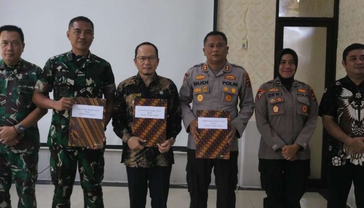 TerabasNews, Koba– Bupati Bangka Tengah, Algafry Rahman, didampingi Kepala Badan Kesatuan Bangsa dan Politik (Bakesbangpol), Samsul Komar, menandatangani Naskah Perjanjian Hibah Daerah (NPHD) tentang Hibah Dalam Rangka Pengamanan Pemilihan Bupati dan Wakil Bupati Bangka Tengah 2024 bersama Dandim 0413 Bangka, Letkol Agung Rahman Wahyudi, dan Kapolres Bangka Tengah, AKBP Dwi Budi Murtiono, di Ruang Rapat Bupati Bangka Tengah (Bateng), Jumat 14/06.